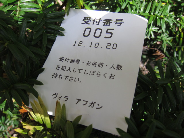 席は2-4人用のテーブルが5卓、10人ほど座れる大きなテーブルが1つ。なので、各テーブルに一組ずつ、大テーブルの収容が3組とすると、開店一巡目に入るには、グループの人数にもよりますが、8番以内の札を取りたいものです。