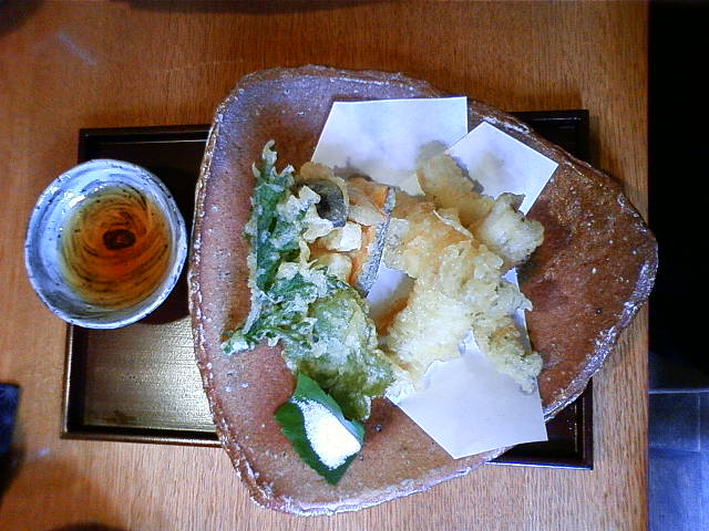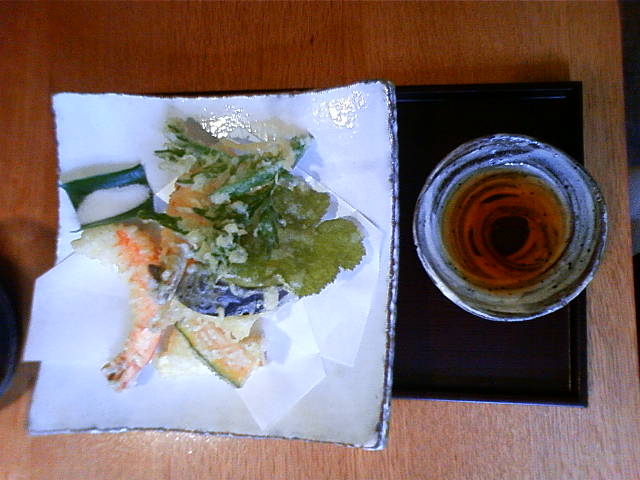 ・旦那は冷たいお蕎麦と天ぷらのセット。¥1,500。天ぷらには海老ちゃん等がいました。