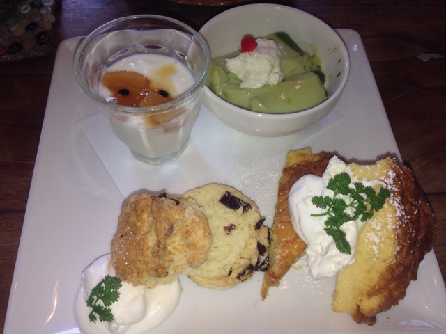 デザートはプラス¥300でおまかせプレートに。抹茶プリン、ヨーグルト、シフォン、スコーンでした。