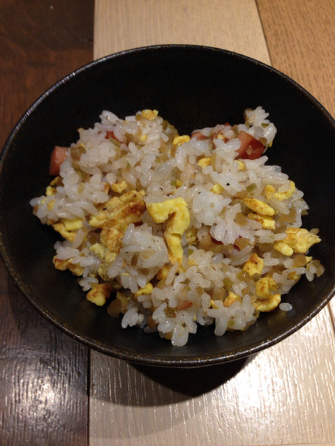 ・しじみのお吸い物はここにきてホッとしますね。焼き飯はもうお腹いっぱいであまり食べれませんでしたが、卵とポークハムのシンプルな組み合わせでした。