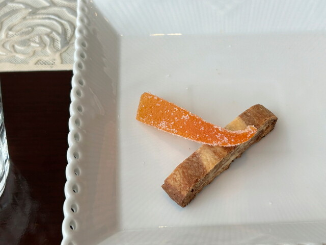 お茶菓子はできたてのルビーグレープフルーツのピールとビスコッティ