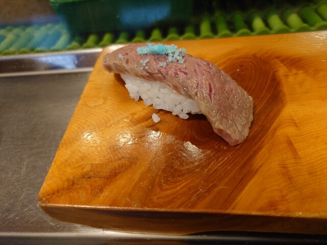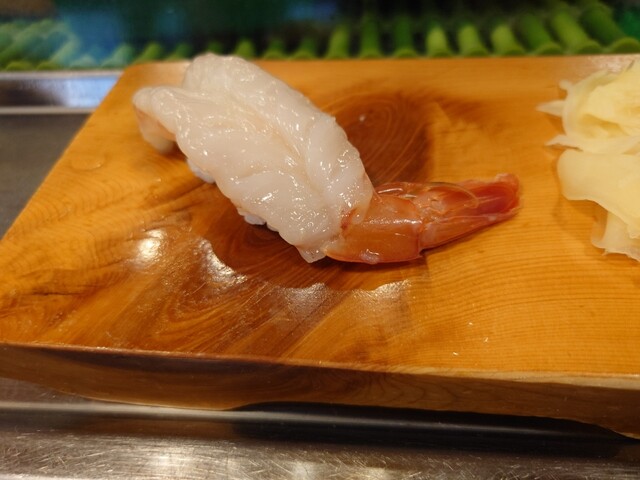 赤えびがぷりぷりで大きくサイコー。和牛の炙りや玉子焼きにお饅頭を入れた変わり種まで。