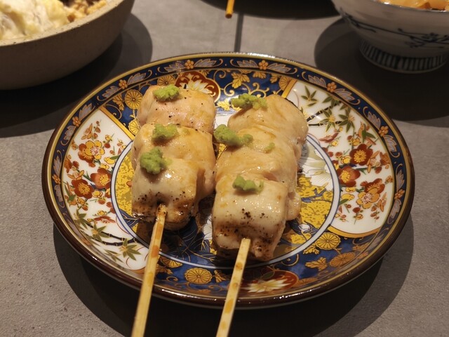 ささみのしそ巻き、砂ずり、ソリレス、つくね、うずらの5本。