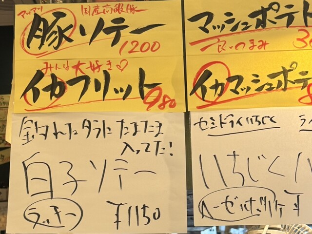 お品書きの情報量も多いですが開店から30分でほぼ満席で忙しいだろうにホールのスタッフさんたちが陽気に万遍なく客に声かけし目配りする感じが心地よかったです。