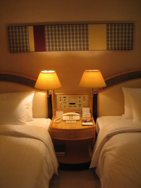 今回のお部屋は19Fのラグジュアリータイプ、シモンズ社のベッドが設えてあります。