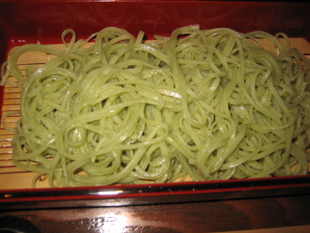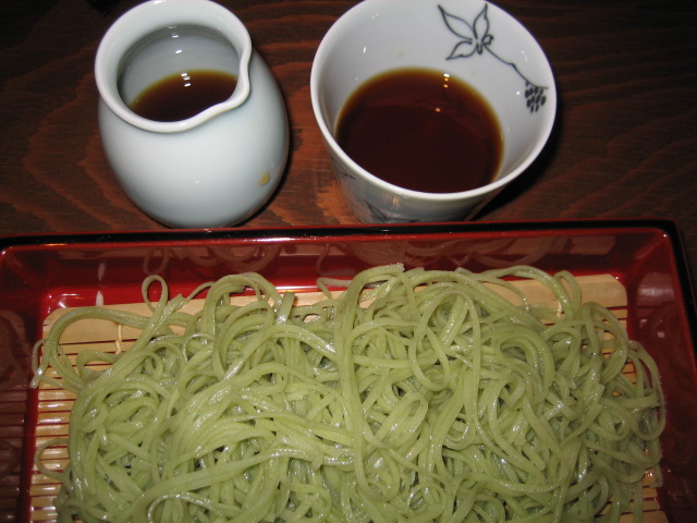 大根おろしとそばつゆのみ、よもぎを摺り込んだお蕎麦は繊細な