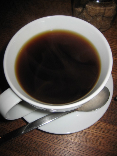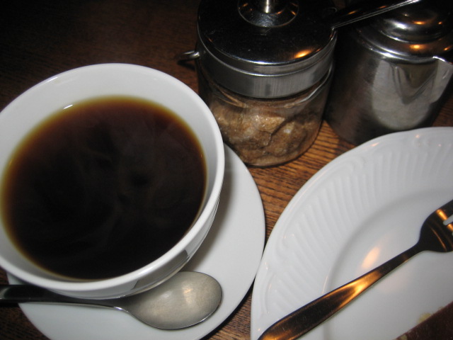 コクの深いオーガニックコーヒー、濃厚なチーズケーキに