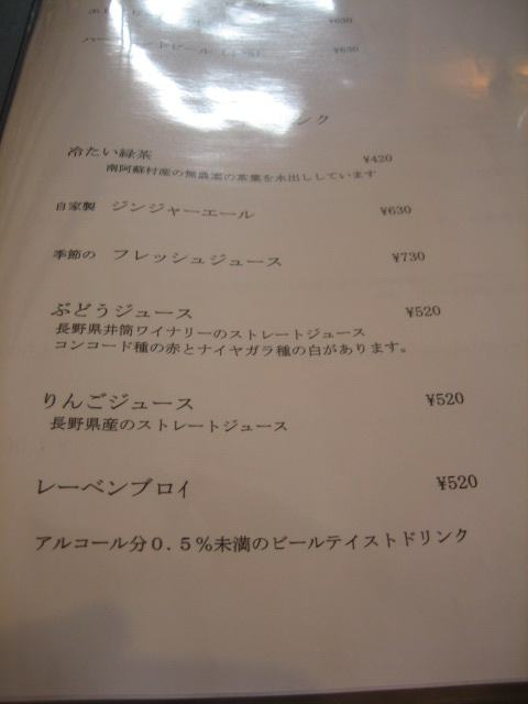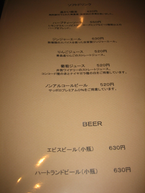 ドリンクメニュー