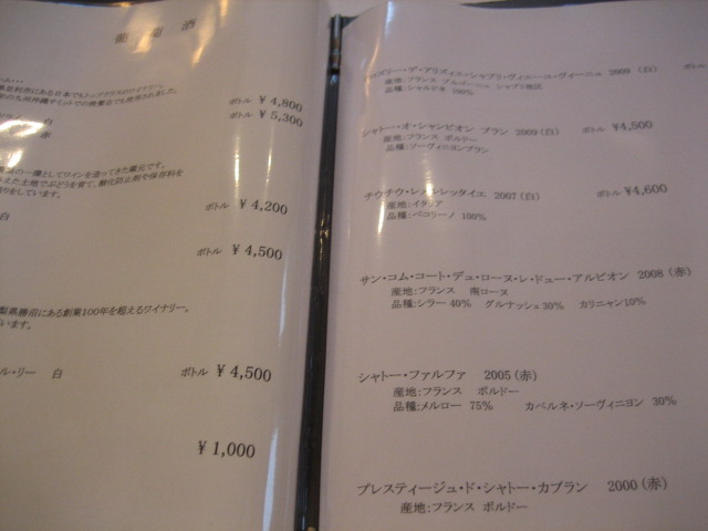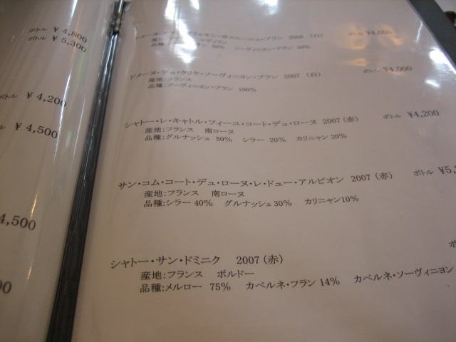 ワインリスト(飲めないのが恨めしい)