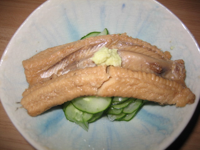 いただいたのはそば焼酎・雲海、穴子&胡瓜の酢の物、