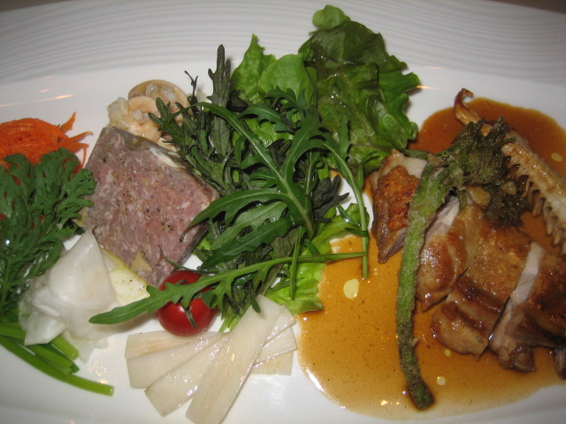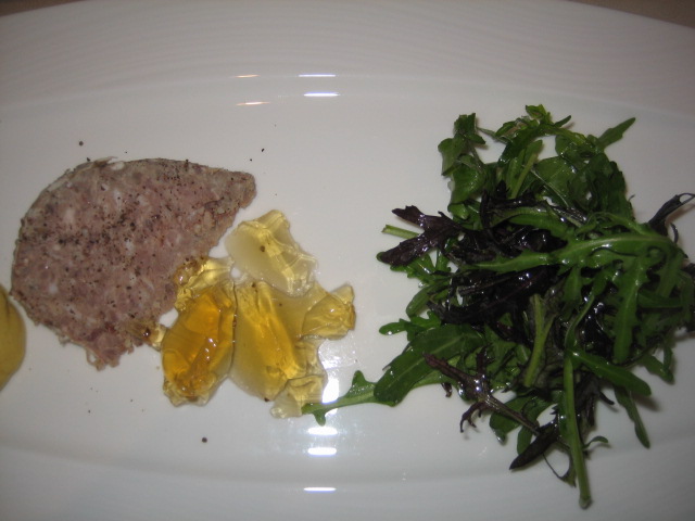 前菜のパテはこれまでいただいたものよりもかなり肉質が締まって、旨みの凝縮した