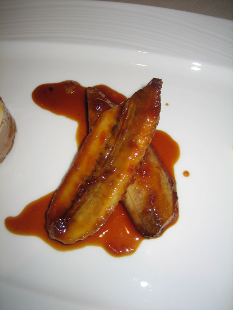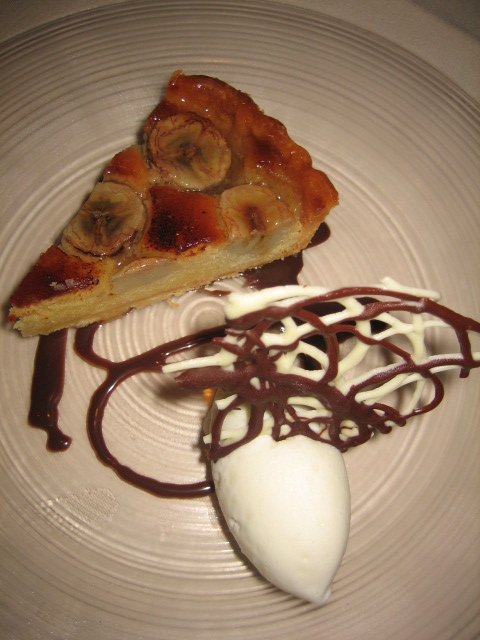 デセールのサンマルク、バナナのカラメルソース、バニラアイスの3点セット、更にコーヒ