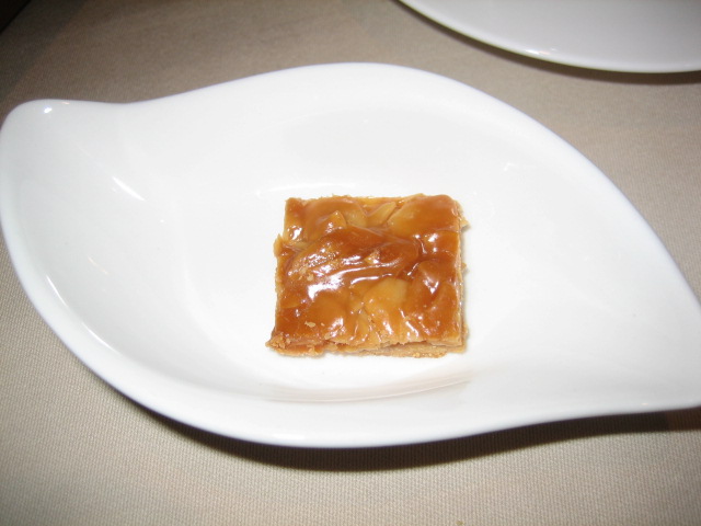 ーの付け合わせに自家製アーモンドパイがサービスでいただきました。