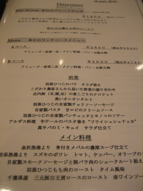 シェフ氏は山形県出身の方、その関係で食材も故郷山形産の魚介類、畜産品、野菜を