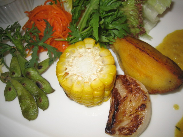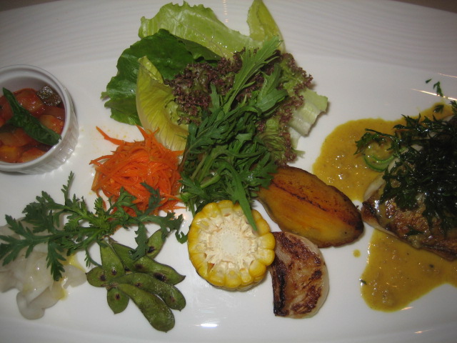 付け合わせには土筆のようなフランス産アスパラ、ニンジン、マッシュルーム、山形