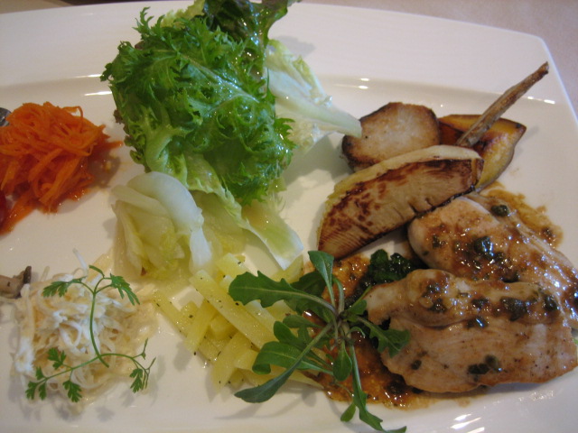 確保してくれていたので難なく着席、今回はプレートランチ、大山地鶏ソテーと野菜類