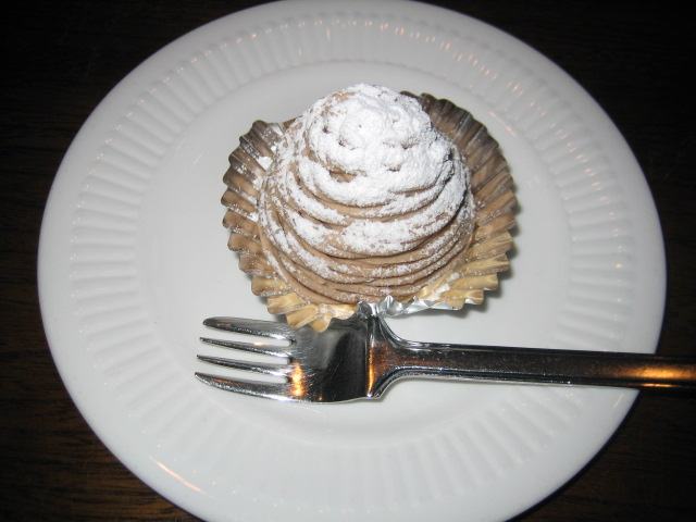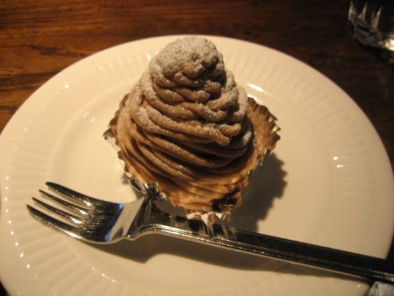 3ヶ月ぶりの訪問。今回は季節限定のモン・ブランをいただいてきました。昨日の昼以降これまでとは全く違う気象条件、急激な気温低下で一気に冬らしくなりました。数年ぶりにいただいたモン・ブランは従来通りカカオの風味とほのかな甘味が健在。中味の栗にも味が良く浸み込んでおり久々に味わう小気味の良い旨さを体験したひと時でした。