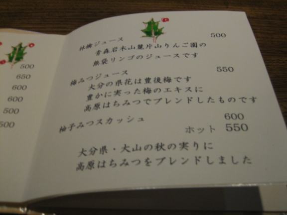ドリンクメニュー