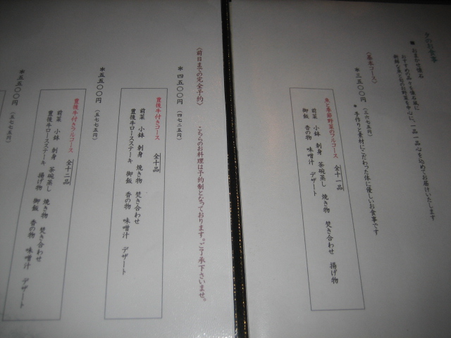 ディナーメニュー