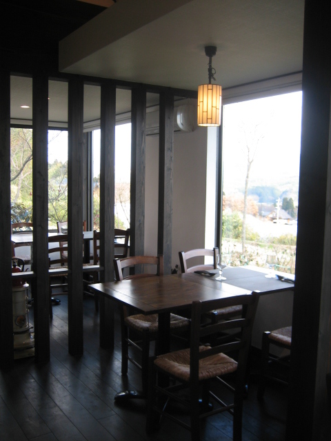 店内は細長い構造、夫々に大きなガラス窓が仕切られており、雄大な阿蘇