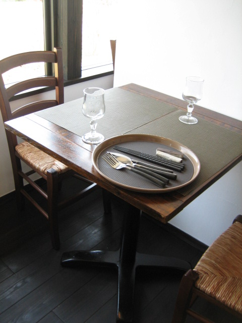 今回はランチの風コースとソフトドリンクを注文、ランチにはパン、有機野菜