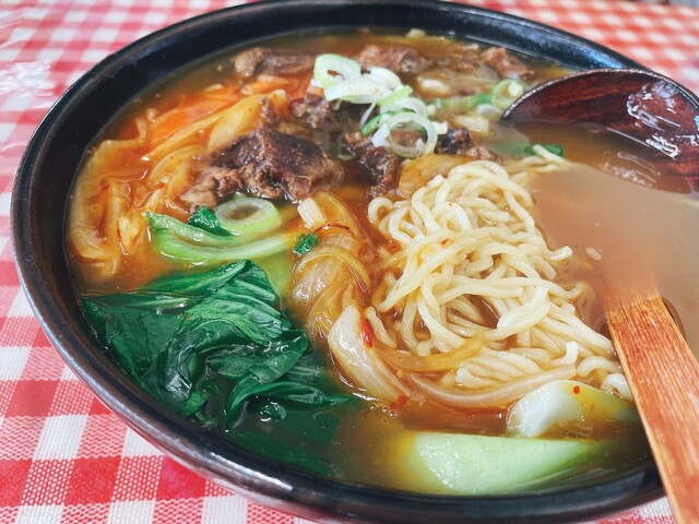 焼肉屋さんのカルビスープをイメージさせる一品。手作りの餃子の餡も美味しい。