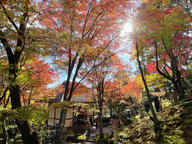 朝の光を浴びた色付いた紅葉はとても綺麗です。