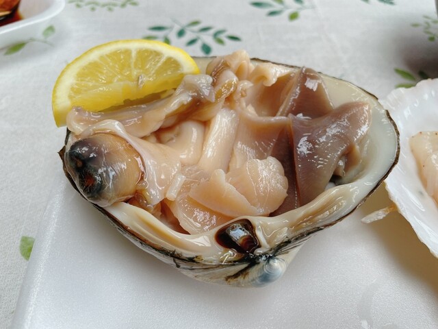 生のほっき貝のお造りは、味、コリコリした貝の食感ともに最高。