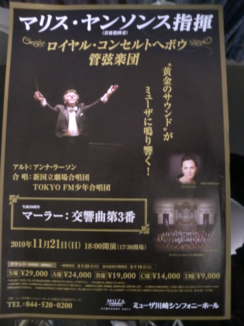 昨日21日川崎ミューザでマリス・ヤンソンス指揮ロイヤル・コンセルトヘボウ管弦楽団の