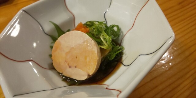 ・トロレバーオイル漬け・うどんフライ・鴨雑炊』を注文。