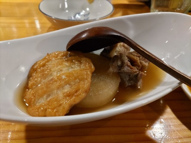 おでんは季節限定メニュー。注文を受けてからしっかり仕上げて提供されます。シミシミの大根が美味しかったです。