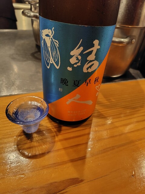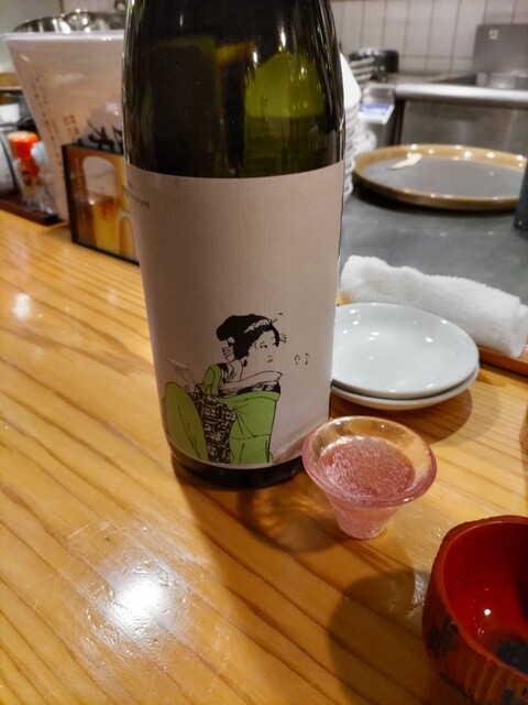 今回は『くじら刺身・砂肝コンフィ・茄子揚げ浸し・クリームチーズ味噌漬け・鴨雑炊』を口頭で注文。出来上がり次第カウンター越しに出されました。