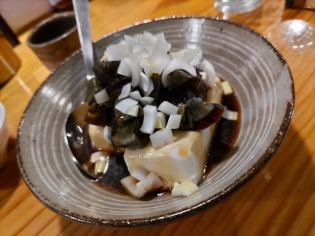 今回は『焼売・わかさぎ天ぷら・天コロ・ピータン豆腐・卯の花・鶏レバーオイル漬け』を口頭で注文。出来上がり次第カウンター越しに出されました。