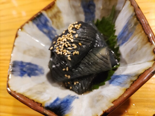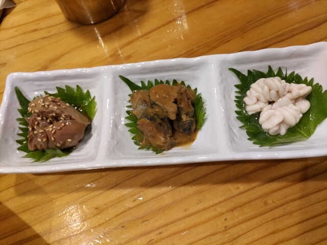 今回は『刺身3点盛り・あん肝・胡瓜の一本漬け・味玉天ぷら