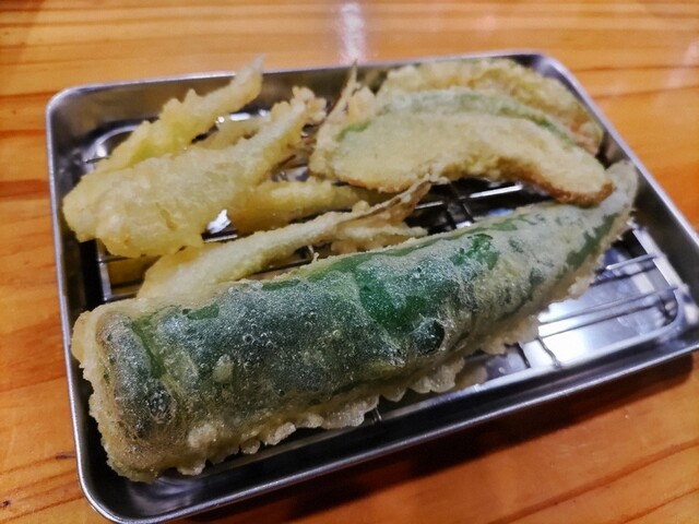 生ピーマン包み・串揚げ(玉葱・アスパラ・レンコン・椎茸)