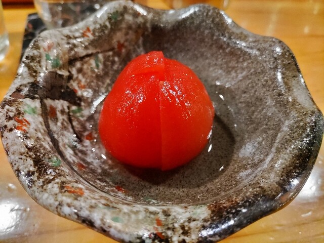 トマトのコンポートは初めて頼んだ一品。トマトの甘さが印象的。キャップがあり凄く美味しかったです。