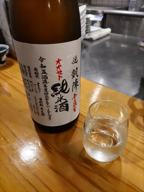 今回は『砂肝コンフィ・鶏レバーオイル漬け・きゅうり一本漬け・くじら刺身・焼売・串揚げ(れんこん・ハムカツ・しいたけ)・おでん』を口頭で注文。出来上がり次第カウンター越しに出されました。