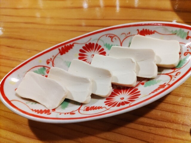 湯葉刺身は山葵醤油でいただきます。湯葉自体は甘味がありますが、山葵醤油だと甘味が引き立ちます。