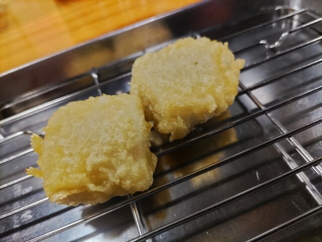 味玉天ぷらは半分に切るとトロリと半熟部分が出てきます。白身部分も蕎麦つゆで味付けられていて中も外も味わえました。