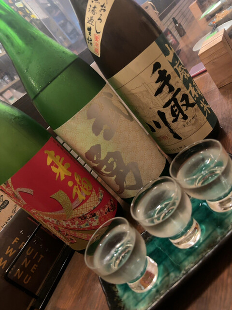 日本酒飲み比べ(穏・にいだしぜんしゅ・フモトヰ)