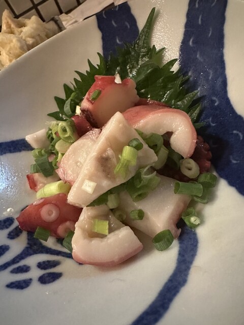 お通しのなめこ餡掛け豆腐みたいのをチビチビ頂きながら、頼んだおつまみは鰹の刺身・鰹の唐揚げとカツオづくしに、夏野菜と鶏肉の甘酢炒めとオイラのポテサラ♪♪