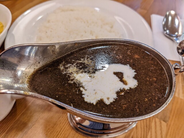 これまでの私のカレー人生(?)も山あり谷ありでしたが、こういうカレーに出会ったことは滅多になく、私が食べログ投稿を始めてからはダントツで美味しいカレーです。カレーソースだけでなく、とろけるチーズの載ったごはん、塩を振っていただくじゃかバターも一貫してまろやかで、全部が美味しいので一日シアワセな気分になれました。お値段も立派ですが、それ以上の満足感が得られます。また何度も食べに来たいカレーでした。