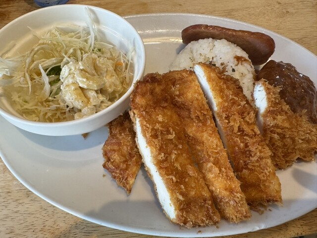 食べたことなかったタコライスを頼もうとメニュー見てたらメガ盛りでチキンフライを追加できるのを発見。結構量が多いお店なので食べられるか微妙な気がしたけどトライした。