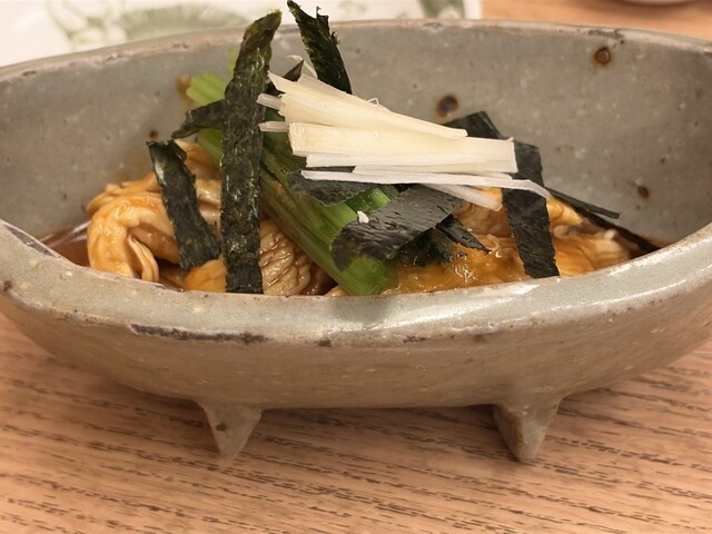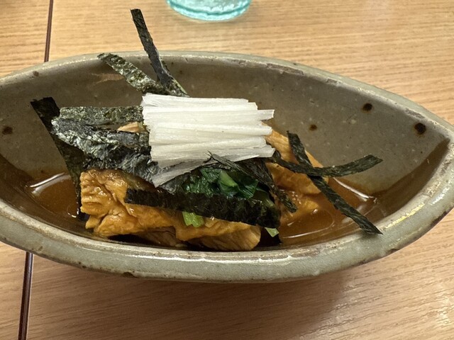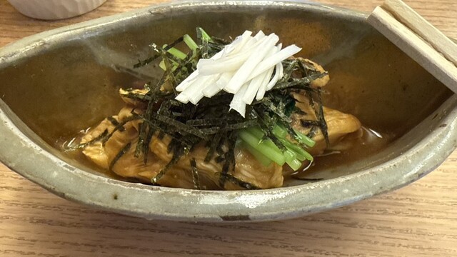 いつもの、蕎麦湯割りと鶏わさ。