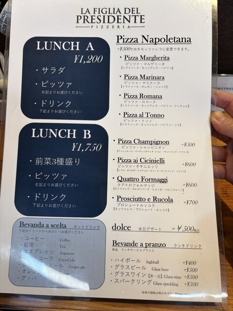 ピッツァは、マルゲリータとロマーナを注文し、シェアしました。