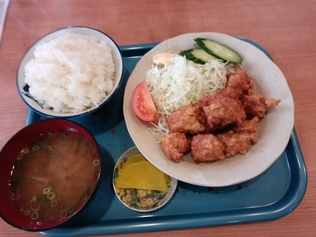 この日同僚は中華丼550円、私は定番のからあげ定食750円!