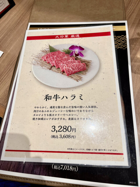 仕事始めの本日は、千葉市中央区都町の【大将軍】とカミさんとディナー!オススメだった「松坂牛 三種盛合せ」と「和牛ハラミ」を頼み、「生ビール 中」のお供に「キムチ盛合せ」と「ホルモン盛合せ スモール」をいただき、「凍らせレモンサワー」へとチェンジ‼︎お腹に若干の余裕があったので、〆に「和牛ミスジ泡雪ポン酢」と「小ライス」をいただいて、程よい満腹感でお店を後に♫明日からも頑張れそうだ!