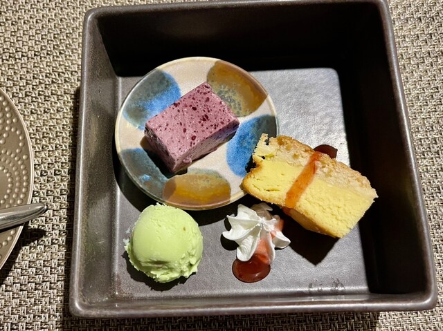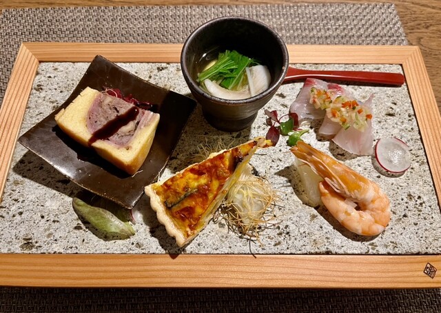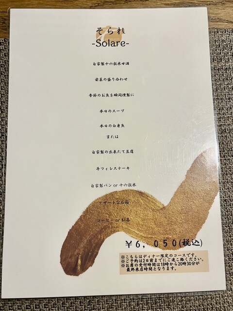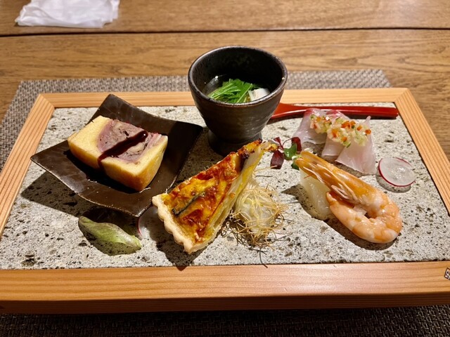 昨夜はカミさんがオススメの緑区古市場町【和フレンチ&カフェ そられ】でディナー。古民家を改装し、小洒落たレストランながらも、カジュアルにお箸でいただけるのが、野暮な自分にはありがたい^_^席に案内されるとコースメニューが有り、どれも美味しそうな内容でワクワク( ^ω^ )運転はカミさんに任せて「スプリングバレー(496)」と「生だいだいジンジャー(ノンアル)」で乾杯。食前のノンアル甘酒からブルスケッタをいただき、前菜の盛り合わせには、鯖タルトが追加されて、見事な彩りで見ているだけで、美味しさが伝わってくる!「スプリングバレー(ジャズベリー)」と共に楽しみ、「チバカラ 純米酒(常温)」も追加!お酒が美味しい(^。^)ジューシーで柔らかい鴨のローストも、上品な甘さが心地よいかぼちゃのポタージュもあっという間に、無くなってしまった(;ω;)へだいのムニエル合わせて、芋焼酎「なかむら」をロックを注文。やっぱりワインより芋焼酎が合う^_^自家製出来立て豆腐を食べ終わる頃にはなかむらも無くなり、牛フィレの低温ローストに合わせて、お店オススメの芋焼酎「水神の心」を選び、メインを堪能‼︎