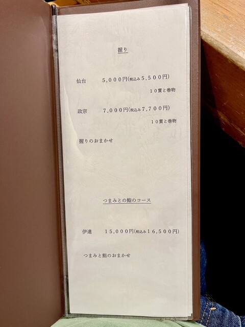 仙台初日の夜に訪問した、仙台市青葉区一番町の【小判寿司】( ◠‿◠ )以前、訪問した仙台酒場の聖地[源氏]さんの向かいにあり、いつかは訪問したかったお店の一つ‼︎事前予約をして訪問したが、平日、木曜日だからか食事を終えるまで訪問客は無く、少し贅沢をして「つまみとの鮨のコース」を夫婦でいただき、ゆったりとした中で大将との会話を楽しんだ( ^ω^ )まずはつまみから提供され、印象的なつまみはネットリとした漬けまぐろに、旨味が凝縮されたタコ)^o^(そして、奈良漬を混ぜ合わせた、食感が何とも言えないくらい、絶妙に美味しいあん肝に、茶碗蒸しには赤酢のシャリも一緒に提供され、途中、茶碗蒸しに入れて食べるように教わりながら、お酒を進ませてくれた‼︎更にメインである握りは、ギリギリまで旨味を引き出したネタばかりで、一つ一つを丁寧に味わい、仙台の夜を堪能させていただいた(//∇//)幾つもある仙台の名店ながらも、大衆寿司店のような暖かい対応に、夫婦共に感動‼︎また、仙台に行く際には、また訪問したいお店の一つ(^。^)