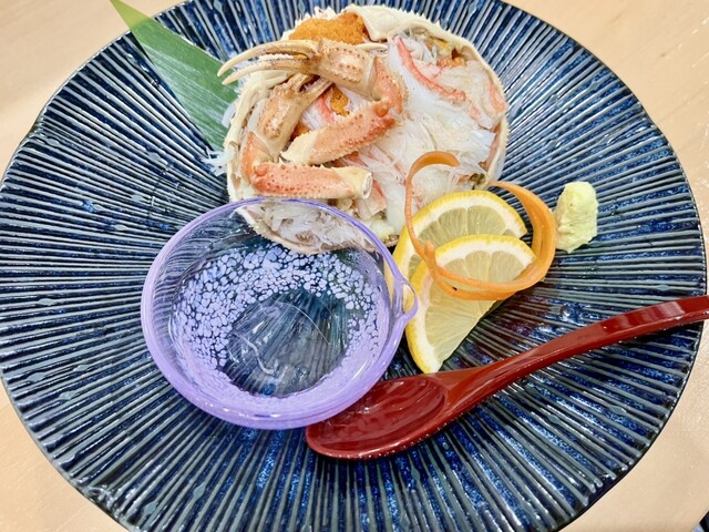 「おおまさりの茹で落花生(お通し)」、「塩もつ煮込み」、「鮮魚盛り合わせ(1人前)」、「噴火湾 香箱蟹」、「慈眼の塩鶏から揚げ」、「特製イカの塩辛」、「じゃこと大葉のおにぎり」に「だし巻き玉子焼き」